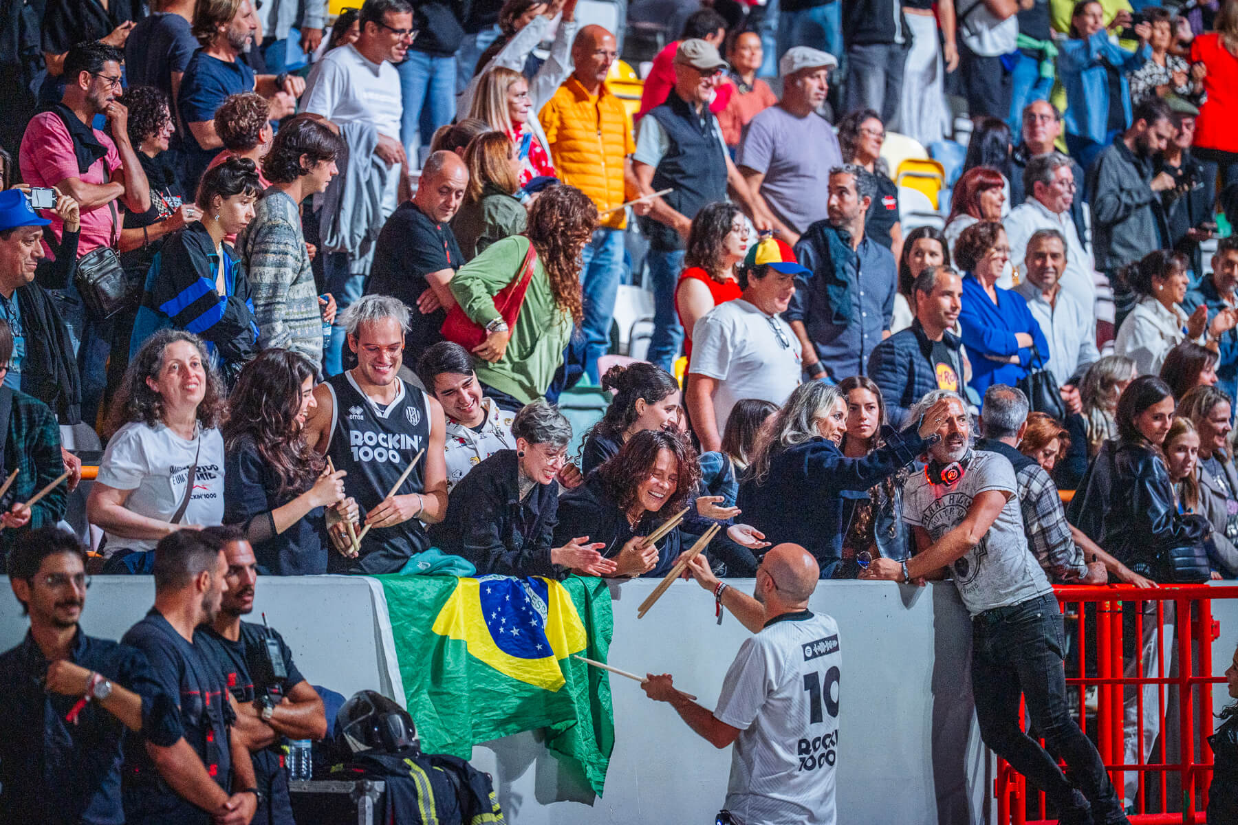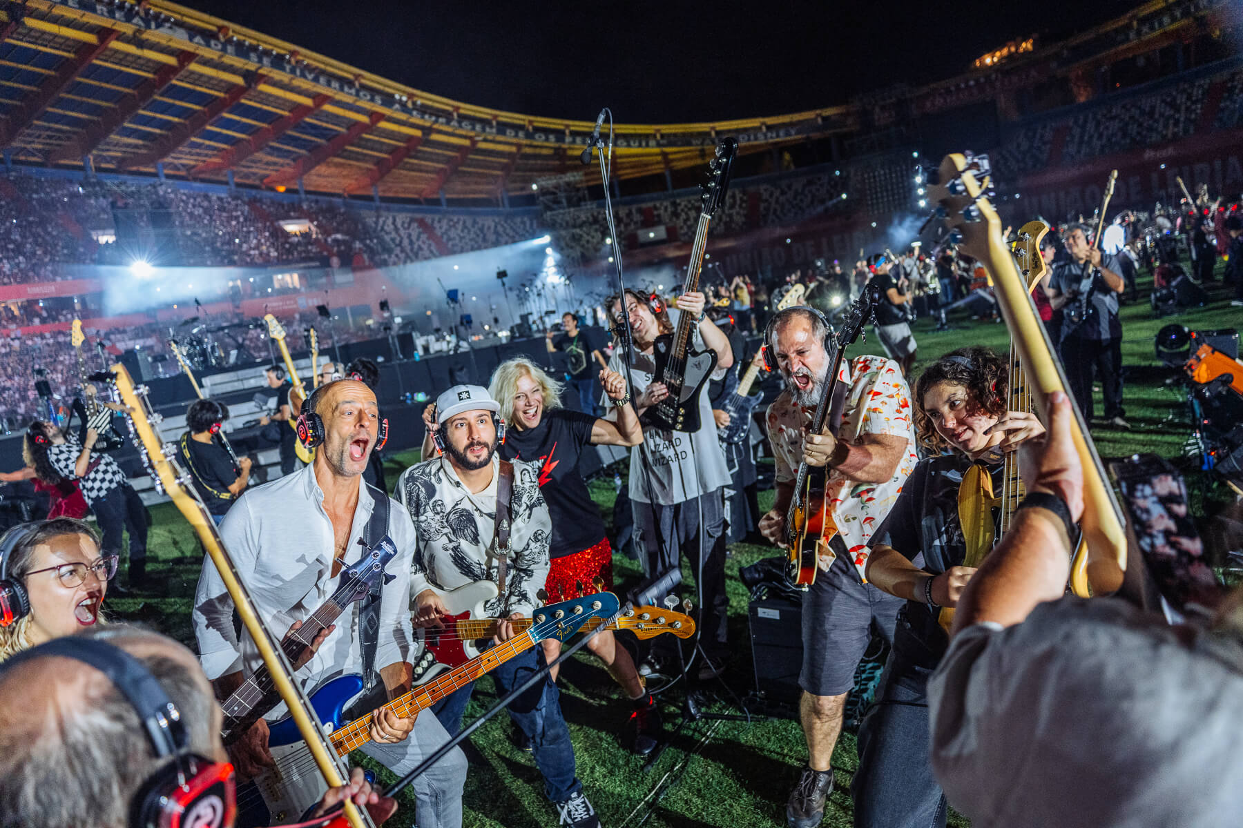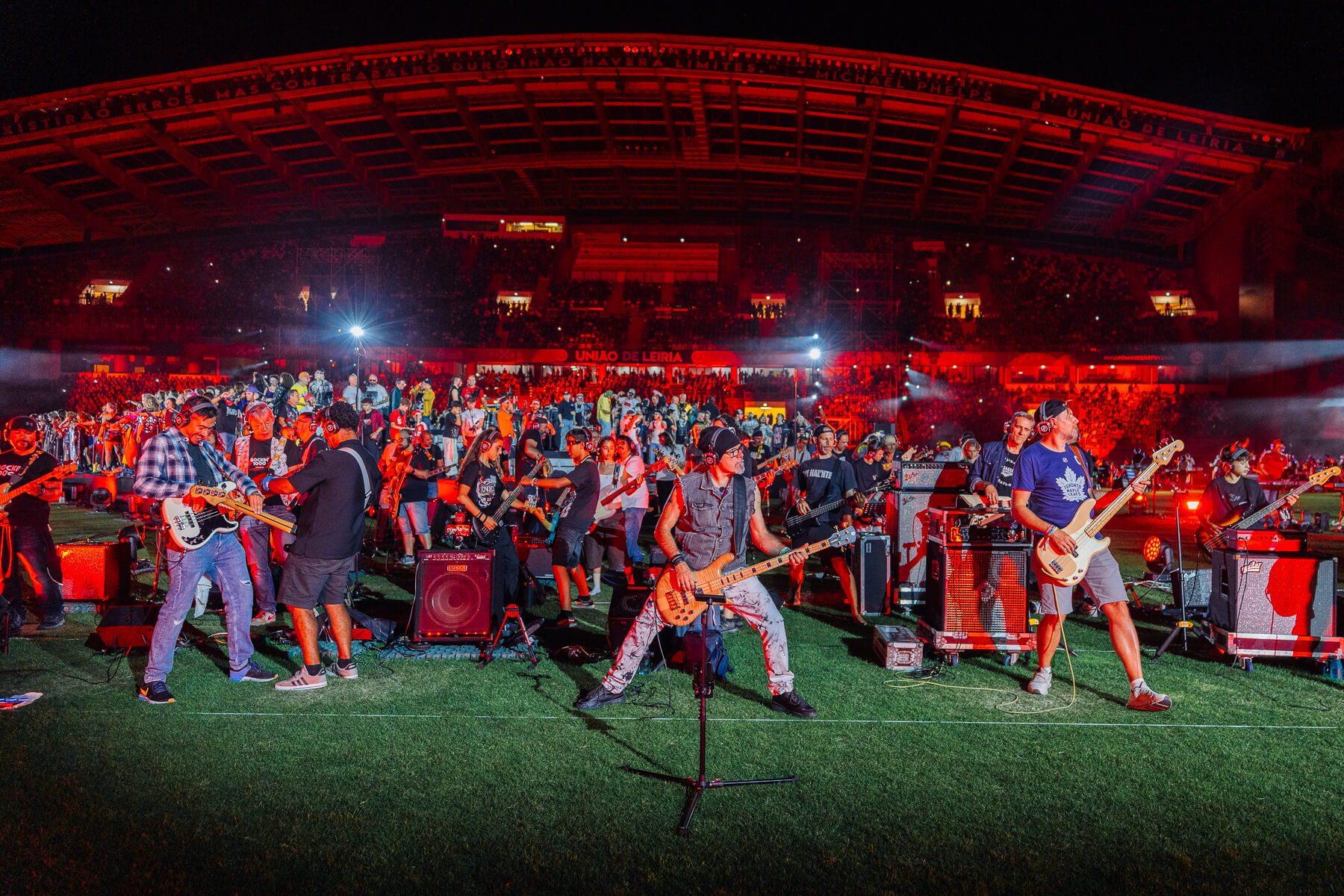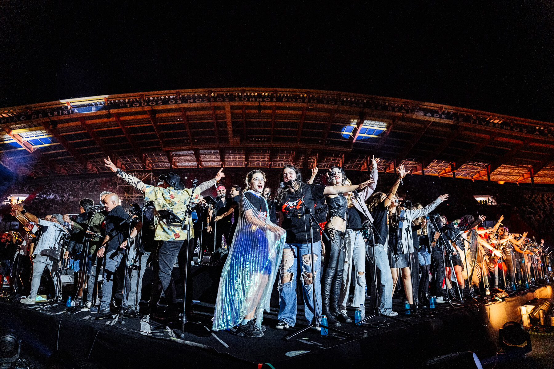 Pular para o conteúdoO Rockin’1000 voltou a encher o Estádio Municipal de Leiria com energia, diversidade e paixão. 1000 músicos de 29 países transformaram a cidade no epicentro mundial do rock com todos os bilhetes que foram colocados à venda esgotados e fãs vindos de 46 países.