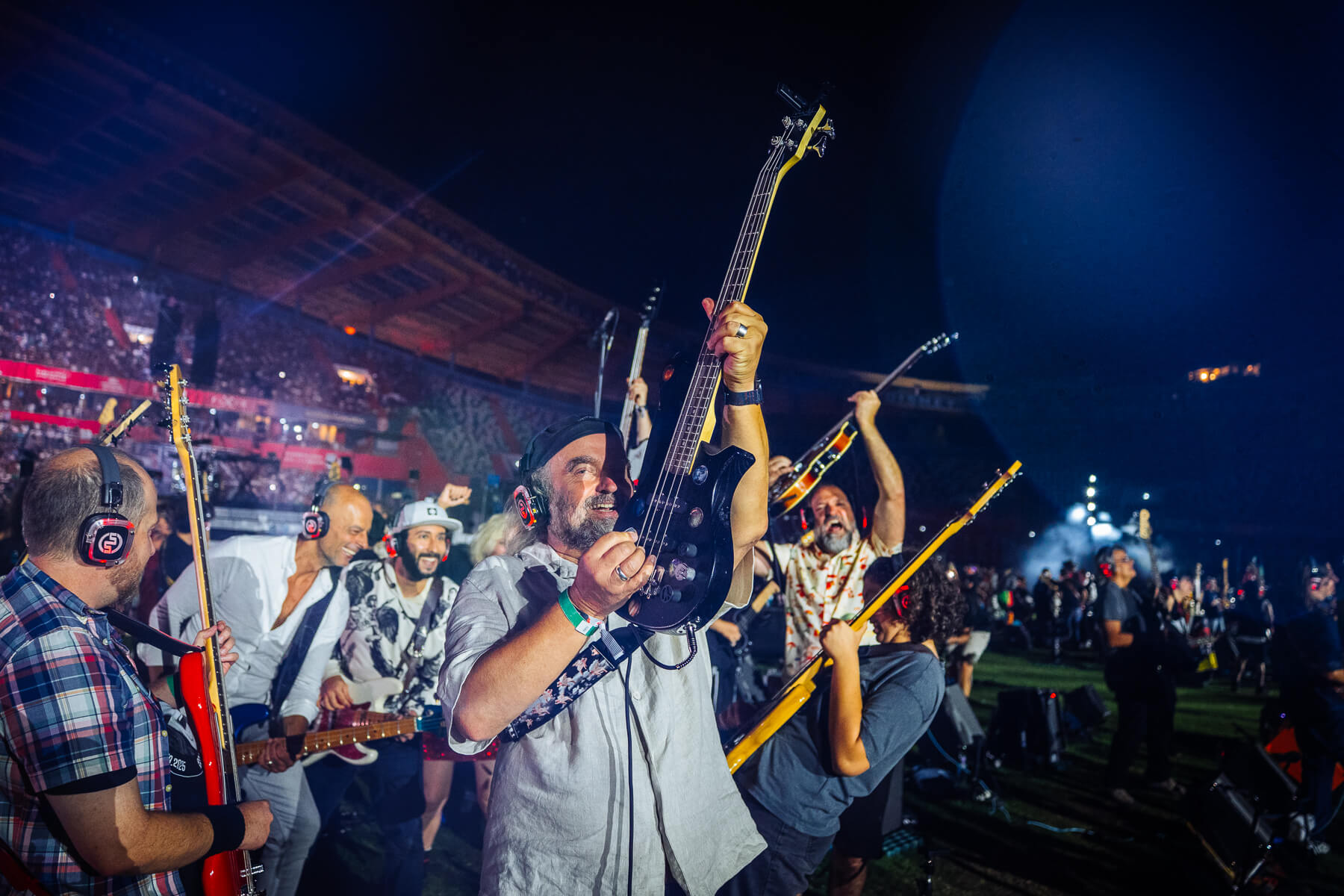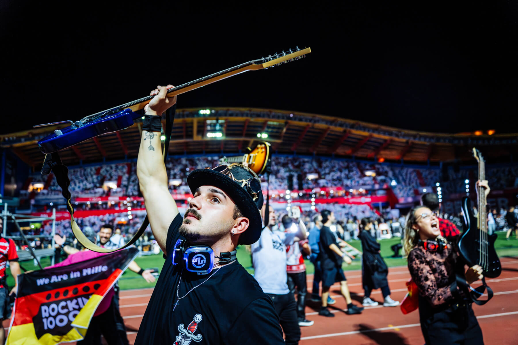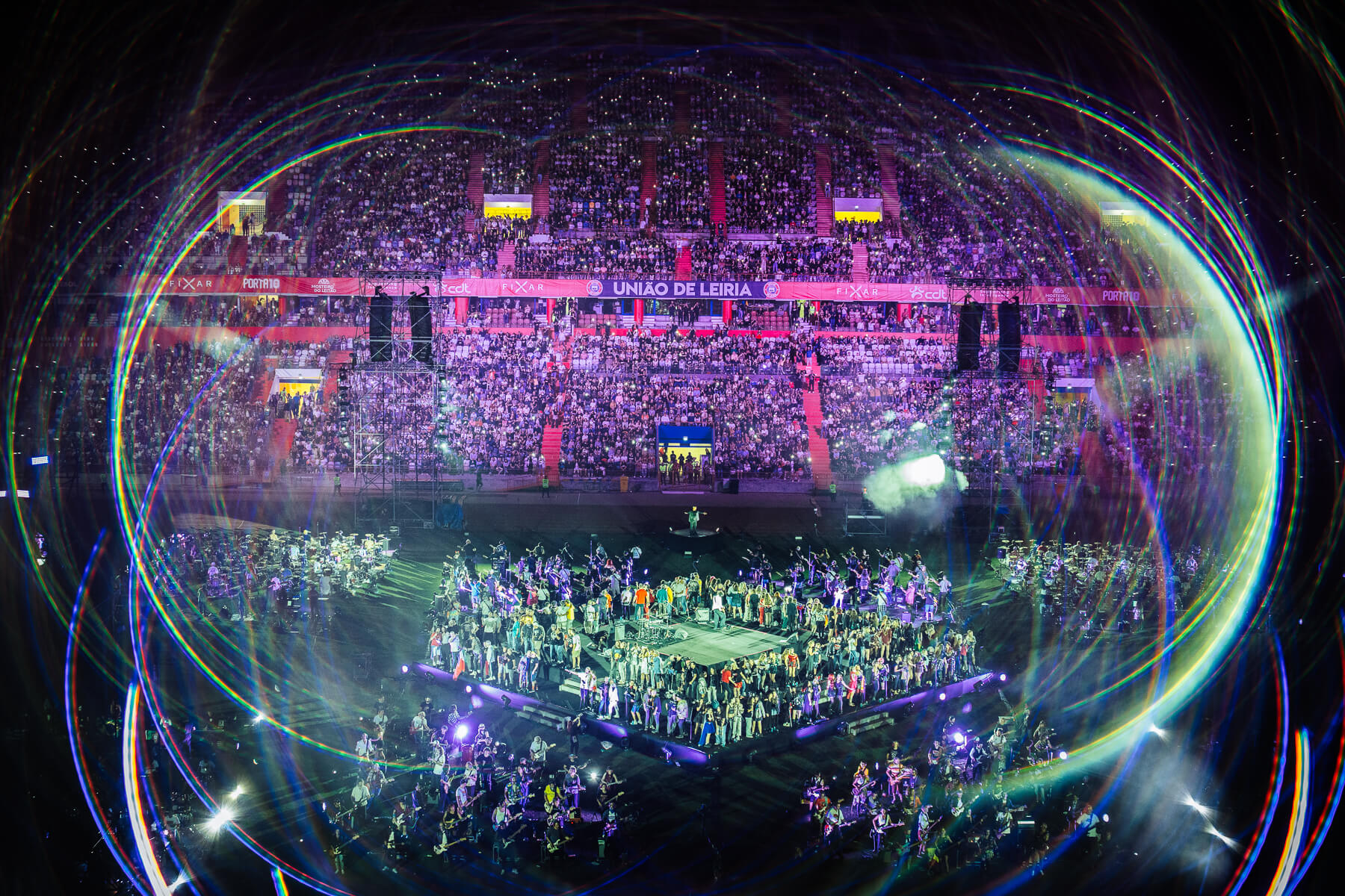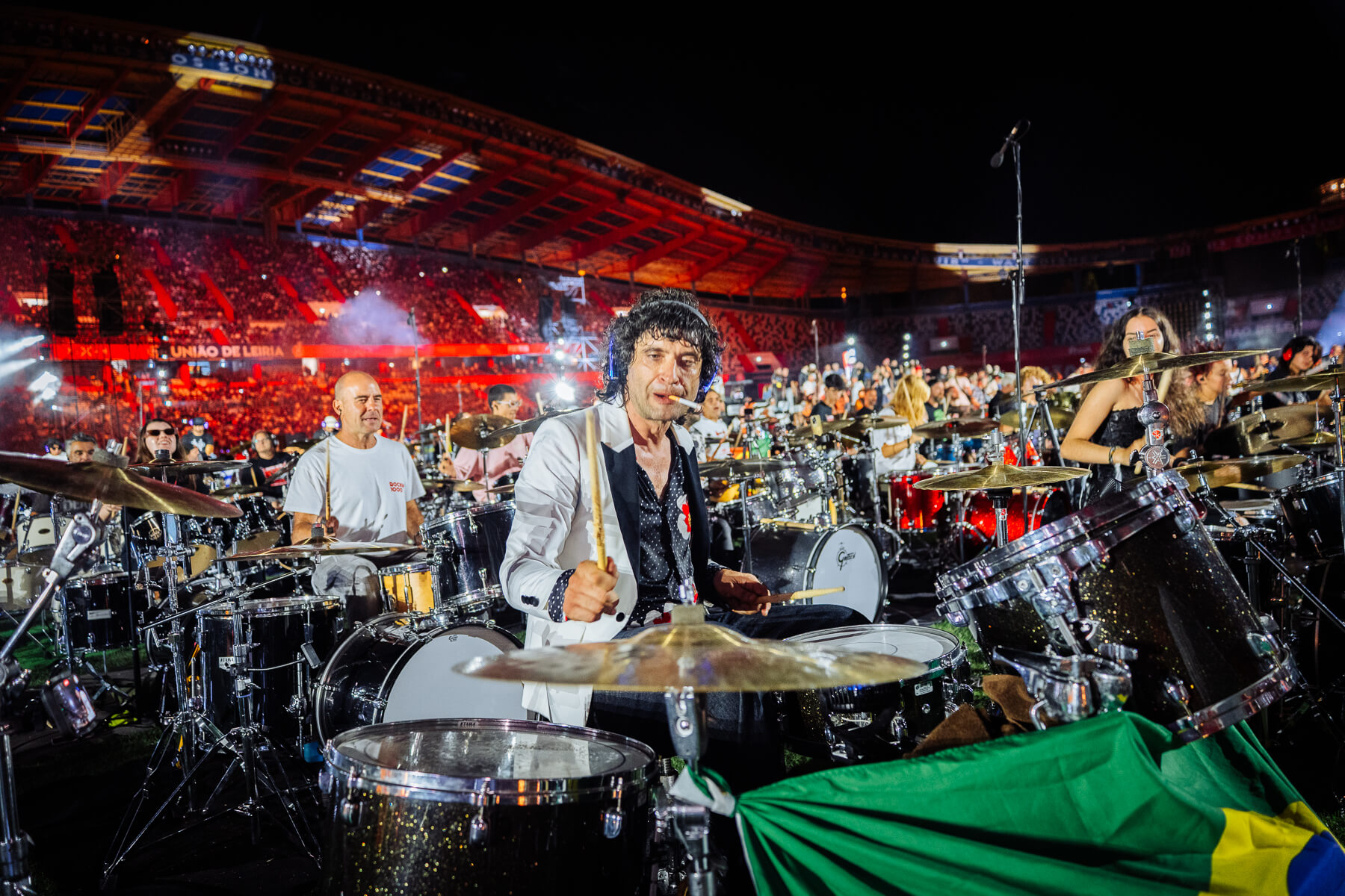 Pular para o conteúdoO Rockin’1000 voltou a encher o Estádio Municipal de Leiria com energia, diversidade e paixão. 1000 músicos de 29 países transformaram a cidade no epicentro mundial do rock com todos os bilhetes que foram colocados à venda esgotados e fãs vindos de 46 países.