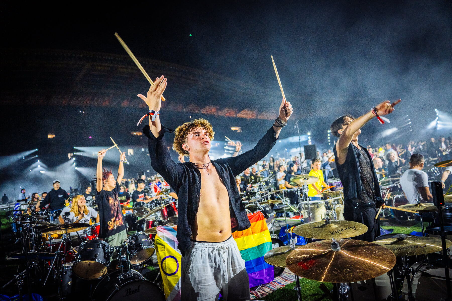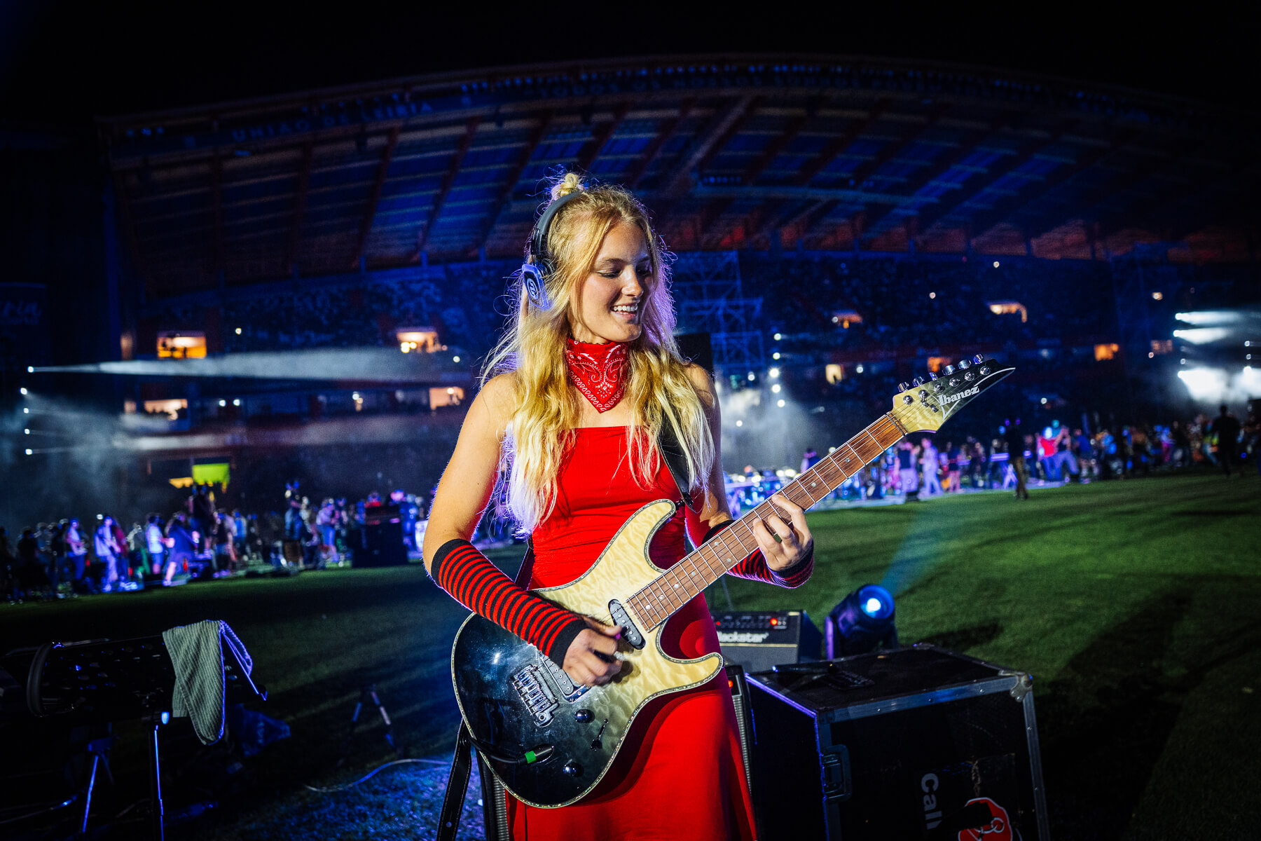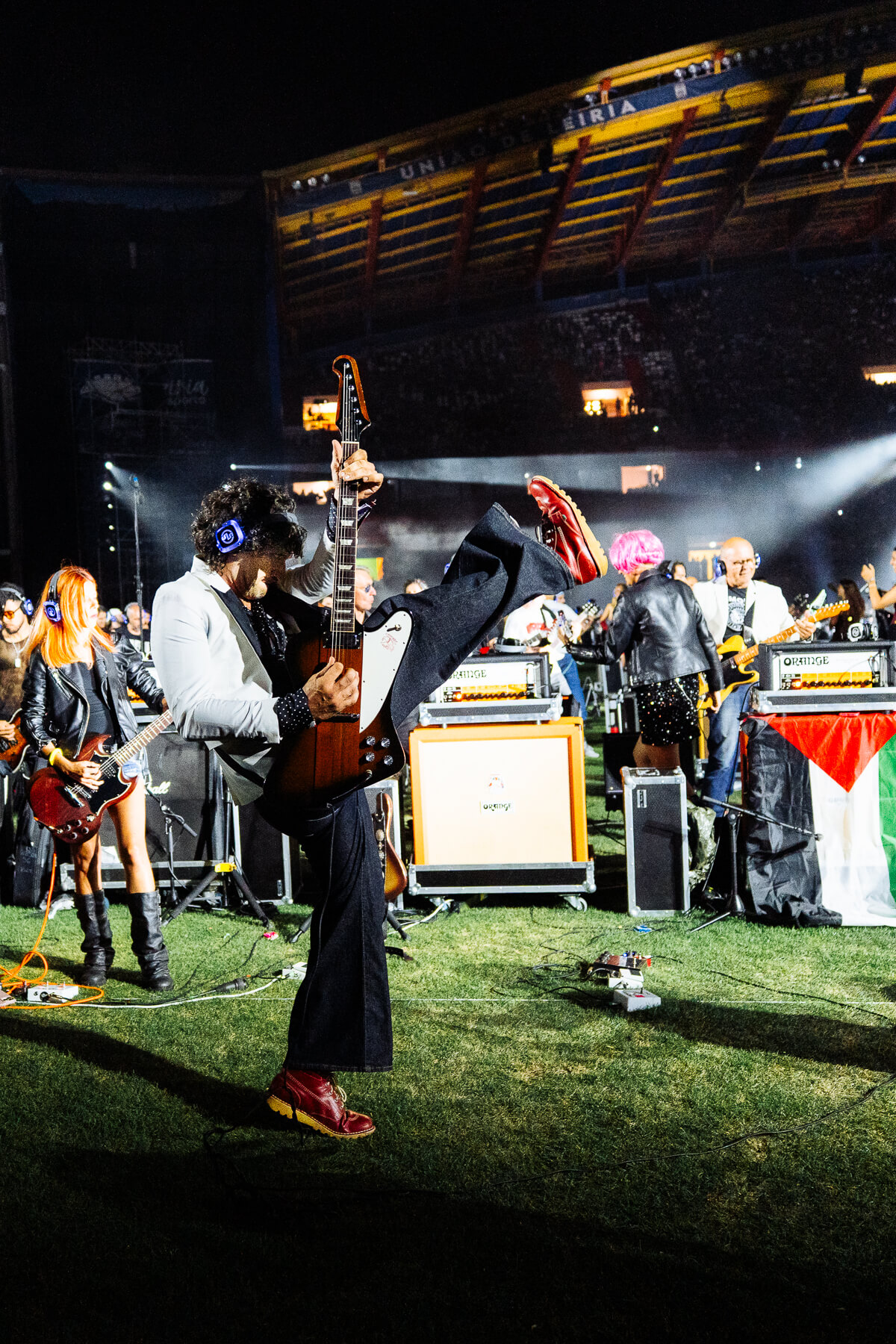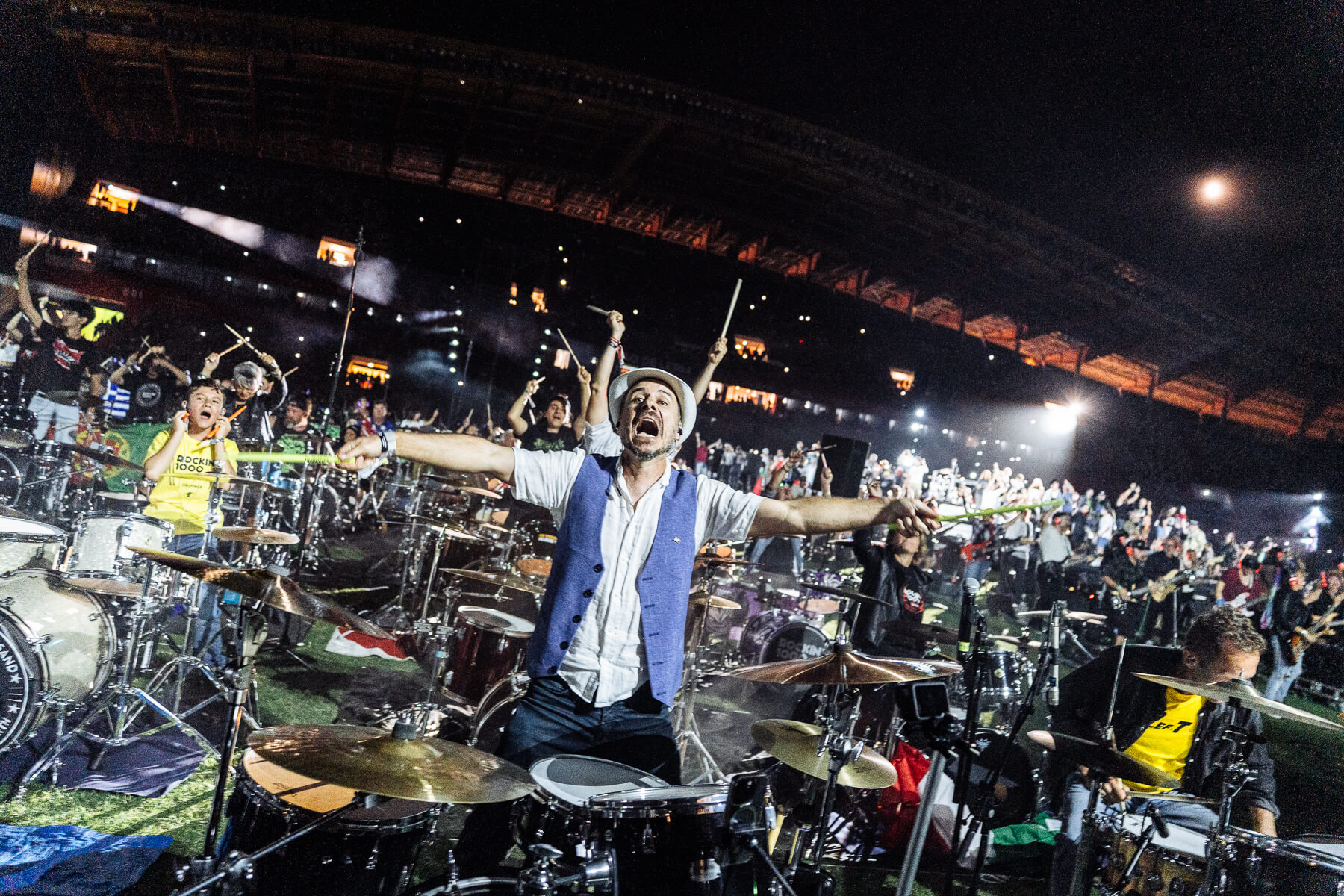 Pular para o conteúdoO Rockin’1000 voltou a encher o Estádio Municipal de Leiria com energia, diversidade e paixão. 1000 músicos de 29 países transformaram a cidade no epicentro mundial do rock com todos os bilhetes que foram colocados à venda esgotados e fãs vindos de 46 países.